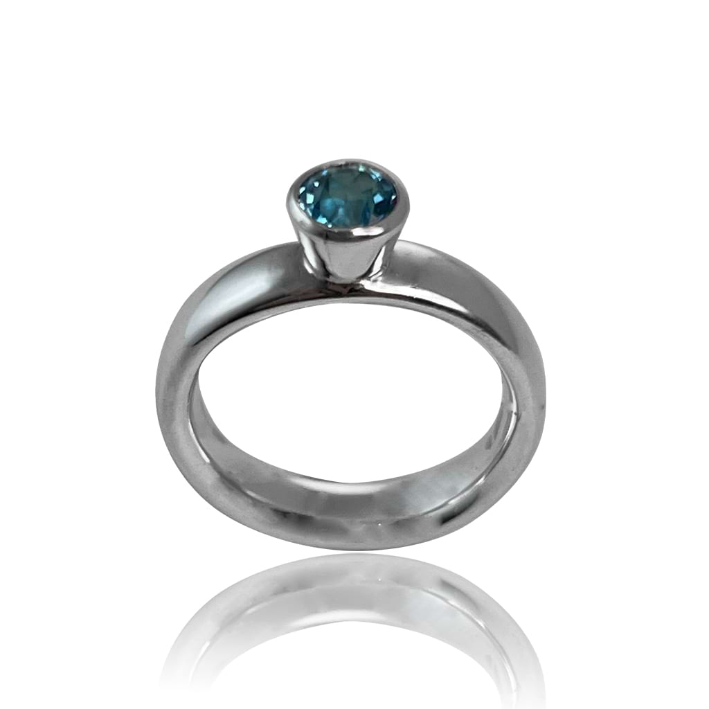 Fabriquée à partir de l'argent massif le plus fin, cette bague exquise présente une bande ovale ornée d'une séduisante topaze bleue.